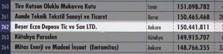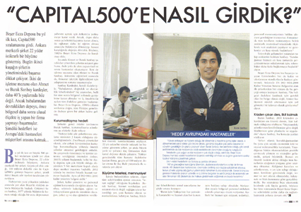 Beşer Ecza Deposu bu yıl ilk kez, Capital500 sıralamasına girdi.Ankara Merkezli şirket 22 yıldır istikrarlı bir büyüme göstermiş.Bugün ikinci kuşağın şirketin yönetimindeki başarısı dikkat çekiyor.ıkisi de işletme mezunu olan Ahmet ve Burak Sarıbay kardeşler, daha 40lı yaşlarında bile değil.Ancak babalarından devraldıkları depoyu, önce bölgesel daha sonra ulusal ölçekte iş yapan bir firma yapmayı başarmışlar.şimdiki hedefleri ise Avrupadaki hastaneleri müşterileri arasına almak.